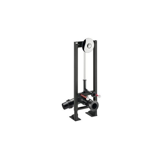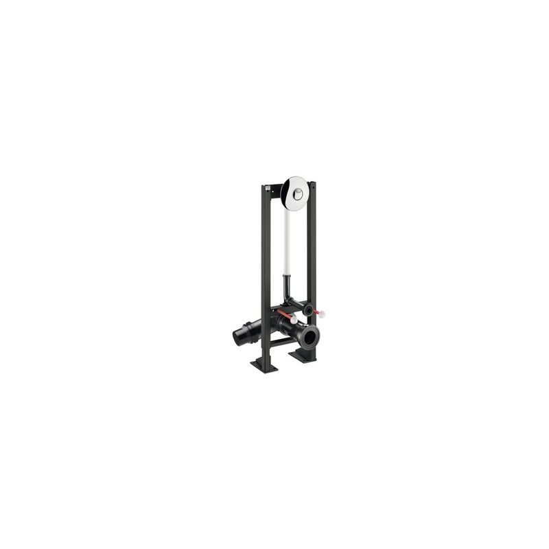 Zelfdragend voorwandsysteem B.350 voor hangtoilet: Voorwandsysteem in zwart geëpoxeerd staal. Bevestiging op dragende vloer. Regelbaar in hoogte tussen 0 en 200 mm (met aanduiding op 1 m). Spoelpijp Ø 32 met toevoerdichting Ø 55. Afvoerpijp met aansluitmof Ø 90 in PEHD met dichtingsring, met 2 regelpunten. Voorgemonteerd geleverd. Conform de norm NF D12-208. Voor gipsplaten van 20 tot 40 mm.Uitgerust met een zelfsluitende directe spoeling TEMPOFLUX 2: Rozet in verchroomd metaal Ø 195 met verborgen bevestigingen. Dubbele bediening 3l/6l (aanpasbaar op 2l/4l). Soepele bediening. Ingebouwde luchtsnuiver. Stopkraan en debiet/volume regeling. Lichaam in massief messing en schokbestendig kalkwerend mechanisme. Aansluiting in lijn M3/4". Geluidsniveau conform met NF EN klasse II. Technische eigenschappen: zie TEMPOFLUX 2 ref. 762902.