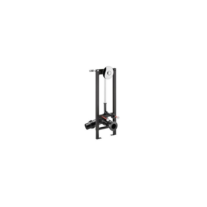 Voorwandsysteem met muurbevestiging B.350 voor hangtoilet: Voorwandsysteem in zwart geëpoxeerd staal. Bevestiging op draagmuur. Regelbaar in hoogte tussen 0 en 200 mm (met aanduiding op 1 m). Spoelpijp Ø 32 met toevoerdichting Ø 55. Afvoerpijp met aansluitmof in PEHD Ø 90 met dichtingsring, met 2 regelpunten. Voorgemonteerd geleverd. Conform de norm NF D12-208. Voor gipsplaten van 20 tot 40 mm. Uitgerust met een zelfsluitende directe spoeling TEMPOFLUX 2: Rozet in verchroomd metaal Ø 195 met verborgen bevestigingen. Dubbele bediening 3l/6l (aanpasbaar op 2l/4l). Soepele bediening. Ingebouwde luchtsnuiver. Stopkraan en debiet/volume regeling. Lichaam in massief messing en schokbestendig kalkwerend mechanisme. Aansluiting in lijn M3/4". Geluidsniveau conform met NF EN klasse II. Technische eigenschappen: zie TEMPOFLUX 2 ref. 762902.