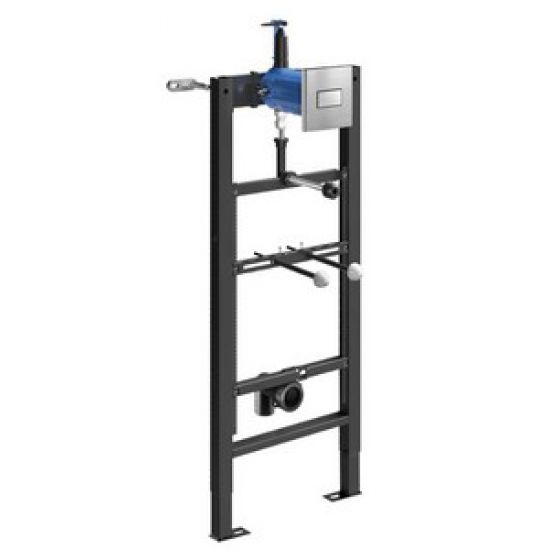 Voorwandsysteem B.430 voor urinoir: Voorwandsysteem in zwart geëpoxeerd staal. Bevestiging op vloer en draagmuur a.d.h.v. meegeleverde verankeringen. Asafstand regelbaar tussen 100 en 280 mm. Chassishoogte regelbaar tussen 0 en 200 mm. Aansluitmof met dichtingsring Ø 50. Voorgemonteerd geleverd. Conform de norm NF D12-208. Geschikt voor volle muren van 13 tot 120 mm. Uitgerust met een zelfsluitende urinoirspoeler TEMPOFLUX F1/2" : Plaat in mat rvs 145 x 145 mm. Soepele bediening. Waterdichte inbouwdoos. Zelfsluiting ingesteld op ~3 sec, aanpasbaar tussen 3 en 7 sec (patent). Debiet ingesteld op 0,15 l/sec bij 3 bar, aanpasbaar tot 0,3 l/sec. Aansluiting met toevoerdichting Ø 35 voor standaard urinoirs. Technische eigenschappen: zie TEMPOFLUX urinoir ref. 778BOX-778700.