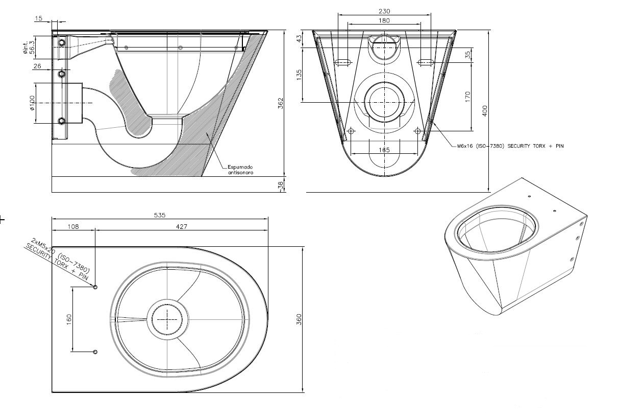 RVS Wandcloset met 'P' sifon. Incl. montageplaat geschikt voor montage aan inbouwsysteem. Uitvoering: satin finish.
