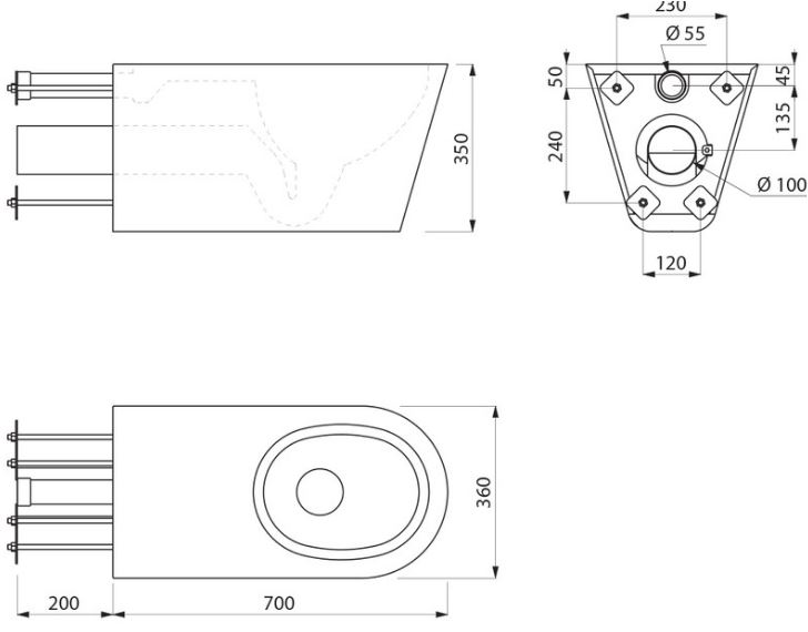Hangtoilet voor installatie door de muur met technische ruimte. Verlengd model, lengte 700 mm voor een beter comfort voor mindervaliden. Elegant en strak design. Bacteriostatisch RVS 304. Mat gepolijste afwerking. Dikte RVS: 1,5 mm. Geperste kom, zonder lasnaden, voor een eenvoudig onderhoud en een betere hygiëne. De binnenkant van de kom is gepolijst en de randen zijn afgerond voor een gemakkelijke reiniging. Met spoelrand. Horizontale toevoer Ø 55 mm. Horizontale afvoer Ø 100 mm. Waterbesparing: efficiënte werking met 4 L water of meer. Toilet met gesloten onderkant. CE markering. Conform de norm EN 997 voor een spoeling van 4 L. Gewicht: 16,5 kg.