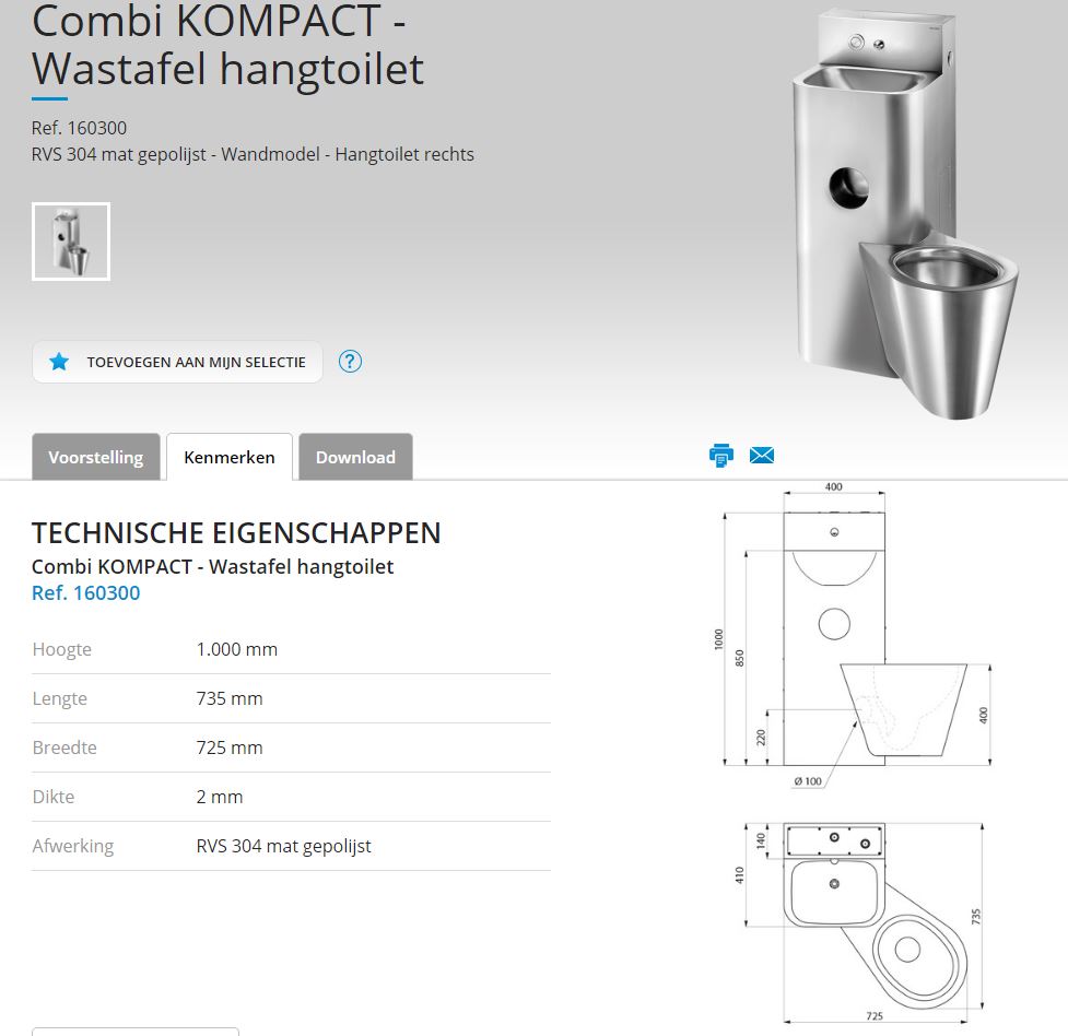 160300 KOMPACT RVS closet-/wastafelcombinatie rechts model met hang closet.