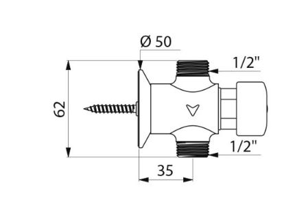 777000 Tempostop kraan 1/2" voor urinoir, rechte aansluiting. Looptijd 3 sec.