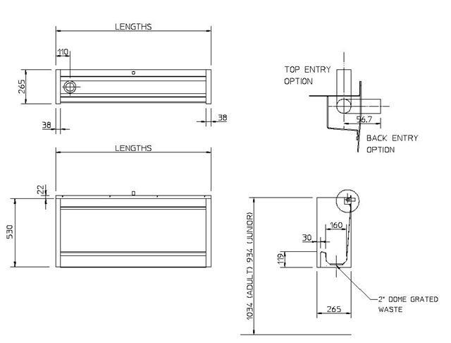 RVS wandurinoir 1200mm afvoer links. Watertoevoer aan boven of aan achterzijde. Incl. afgedekte sproeipijp en 1,5" zelfsifonerende plug met bolrooster.