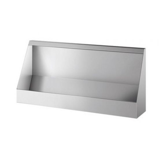 Collectief wandurinoir, 1200 x 575 x 275 mm. Bacteriostatisch RVS 304. Mat gepolijste afwerking. Dikte rvs: 1,2 mm. Toevoer langs boven F1/2. Geleverd met 1 rvs sproeibuis (horizontale geperforeerde buis) die toelaat de volledige urinoirwand te spoelen. Waterbesparing: optimale spoeling met een debiet van 0,1 l/sec of 0,3 liter per gebruik. Afloop rechts, aansluiting Bevestigingen meegeleverd. Het is mogelijk één of meerdere schaamschotten in bacteriostatisch RVS 304 te plaatsen (ref. 100900). Te bevesigen rechtstreeks op het urinoir op de gewenste plaats. Aanbeveling bij installatie: wanneer u 2 urinoirs naast elkaar wenst te installeren, bevelen we aan een urinoir met afloop rechts en een urinoir met afloop links te bestellen. Gewicht: 17,5 kg.