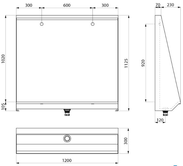 130210 RVS 304 urinoir goot vloer inbouw, 1200x300x1025mm