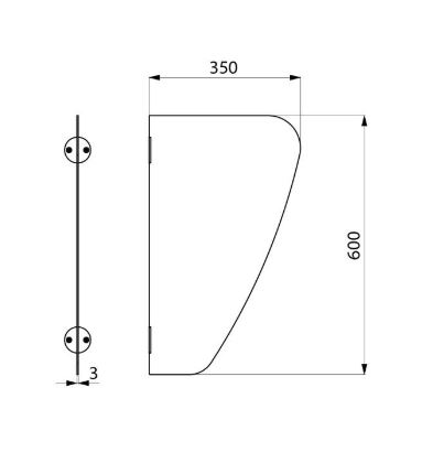 100620 RVS 304-3mm schaamschot wandmontage 600x350mm