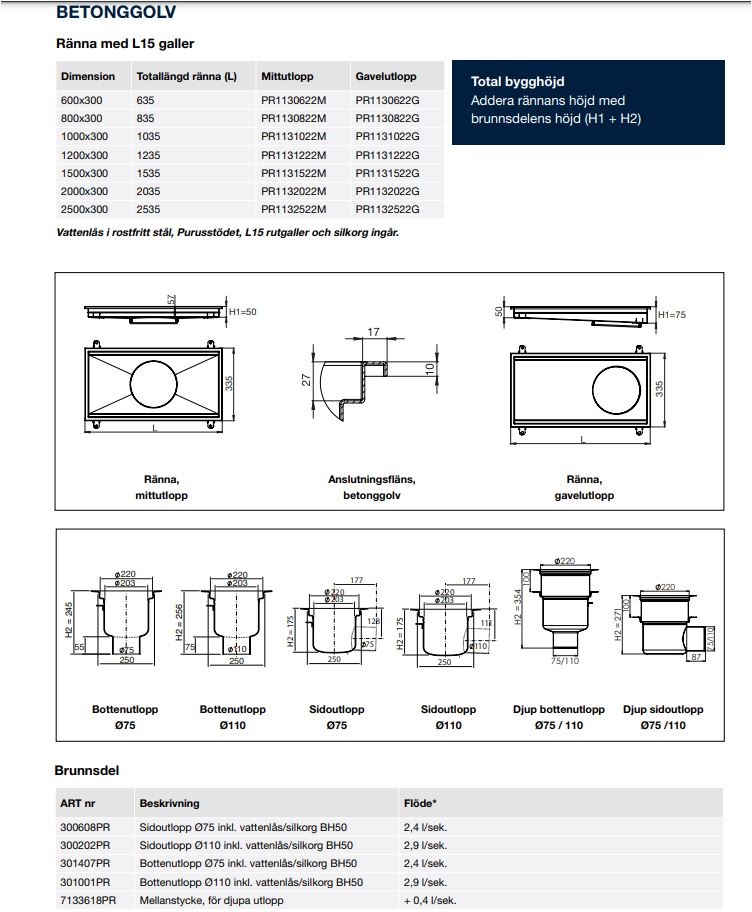 Put in het midden. Incl. stortankers. Incl. put met vuilvangemmer en stankslot.