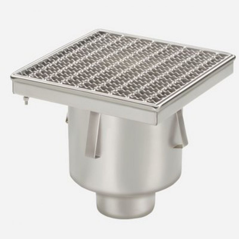 RVS 316 vloerput uitw 300x300mm- Industrieel met maasrooster, onderuitlaat 110mm