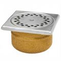 SPECIFICATIES : RVS 316 klokput, oppervlak geborsteld. Insteek uitlaat ø 50 mm met vandaalbestendig rooster ( 5 mm dik) vastgeschroefd rooster. Aardingspunt aanwezig, standaard voorzien van zandhuid