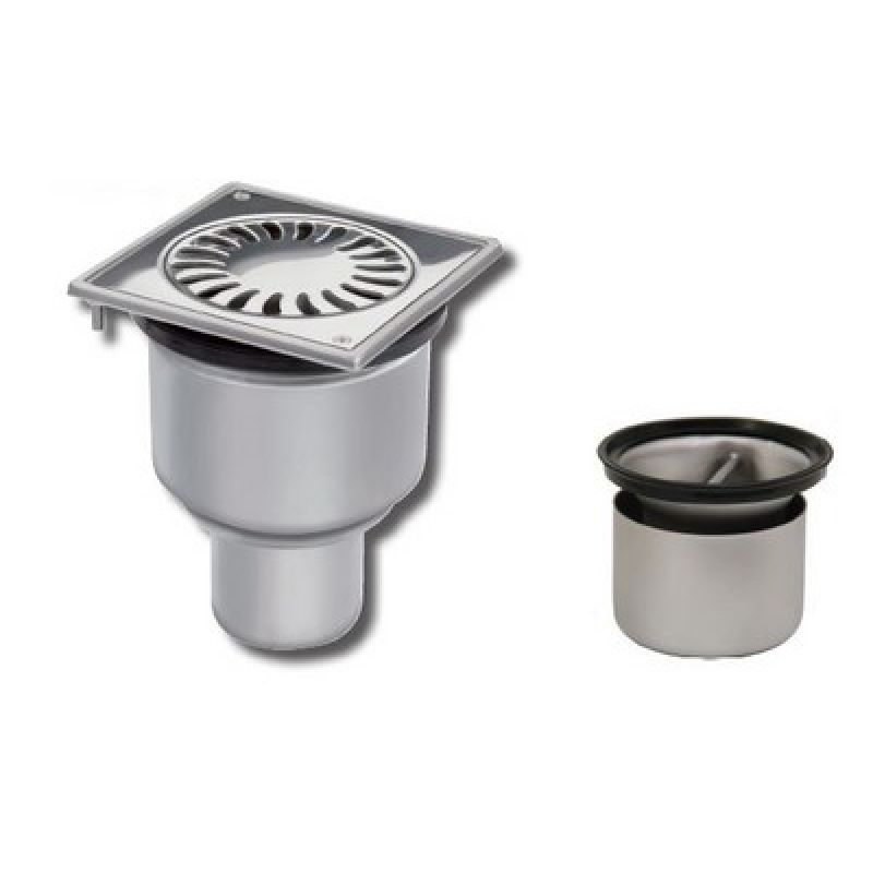 15075 RVS 304 vloerput uitw. 151x151mm onderuitlaat 75mm