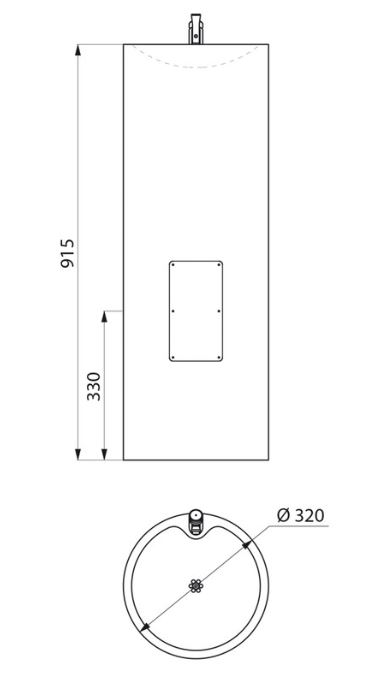 RVS 304 drinkfontein vrijstaand met drinkventiel diam. 320mm. Hoogte 800mm.