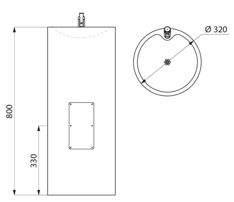 Staand drinkfonteintje. Bacteriostatisch RVS 304. Mat gepolijste afwerking. Dikte RVS: 1,5 mm. Hoogte: 800 mm voor de kinderen. Geleverd met een kraantje voor mondspoeling: verchroomd, onmiddellijke sluiting, met debietregeling, toevoer M3/8". Afvoer met platte geperforeerde rooster, zonder schroef: gemakkelijk te reinigen en vandaalbestendig. Verticale waterafvoer ingebouwd. Hevel 1"1/4. Bevestigingen meegeleverd. Gewicht: 9 kg.
