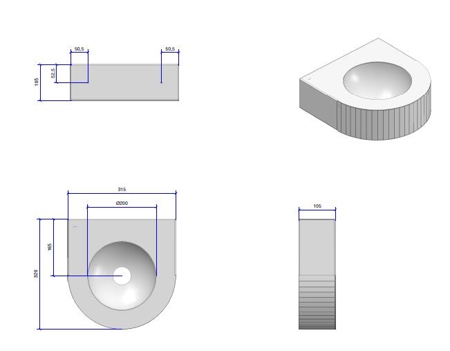 DM241 RVS drinkfontein 315x320x105mm zonder drinkventiel. Inw. 200mm. Incl. afvoerplug.