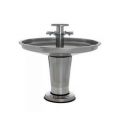 Sanispray RVS wasfontein met toevoerleiding met verdeelkop met zelfsluitende kranen ook leverbaar in andere maten en uitvoeringen 1370, 1130, 995mm voor resp. 10, 8, 6 personen ook een wandmodel in 5, 4 en 3 persoons.
