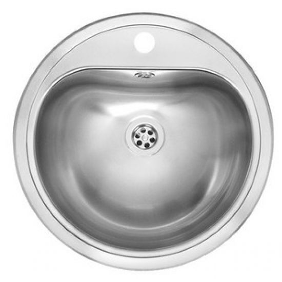 Atlantis Ronde RVS wastafel met kraangat voor opleg. Incl. klemmen en wandoverloop met 1,25" afvoerplug. Afm.460diam.x170mm / Inwendig stin finish
