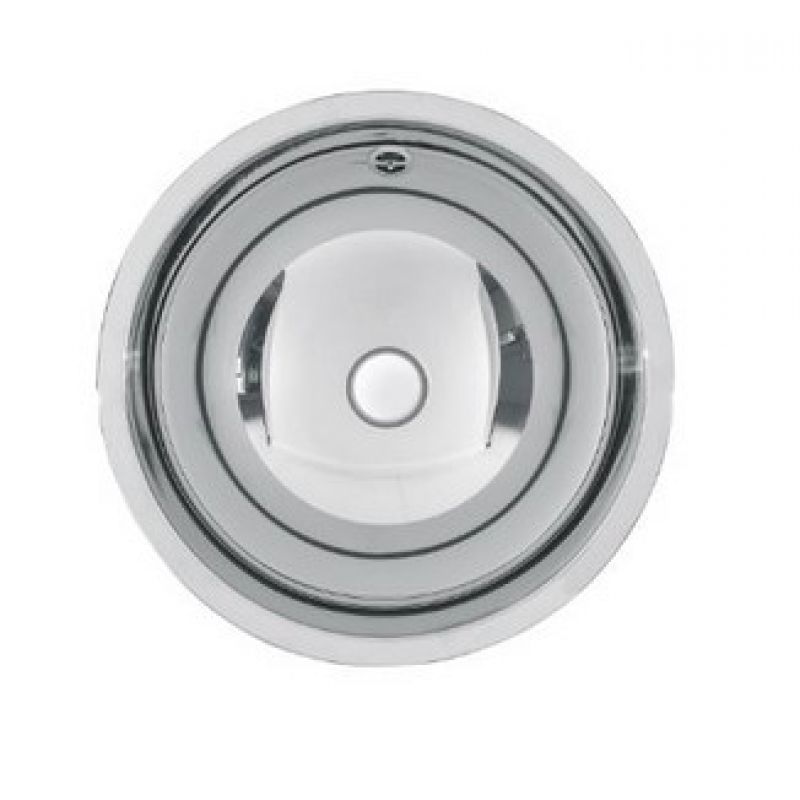 RVS Ronde komwastafel met opbouw met klemmen. Incl. 1,5" afvoerplug en wandoverloop. In- en uitwendig mat. Afm. inw. 380mm, uitw. 428,6mm, diepte 159mm.