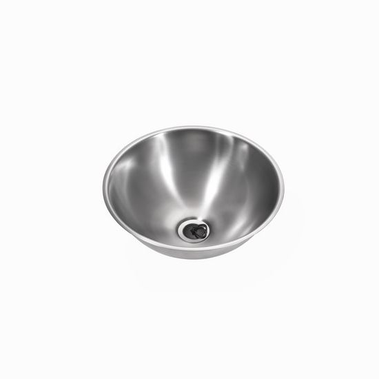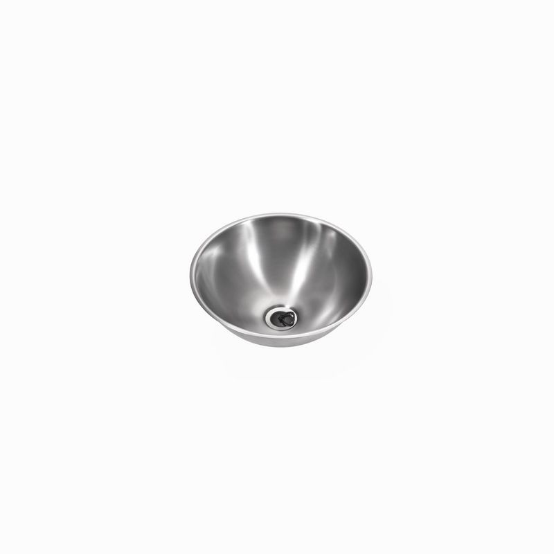 RVS Ronde komwastafel met vlakke rand voor inleg of onderbouw, zonder klemmen. Incl. 1,5" afvoerplug. Zonder wandoverloop. In- en uitwendig mat. Afm. inw. 360mm, uitw. 400mm, diepte 150mm.