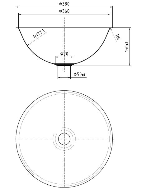 KW360VMGZO RVS komwastafel vlak inw. 360mm mat