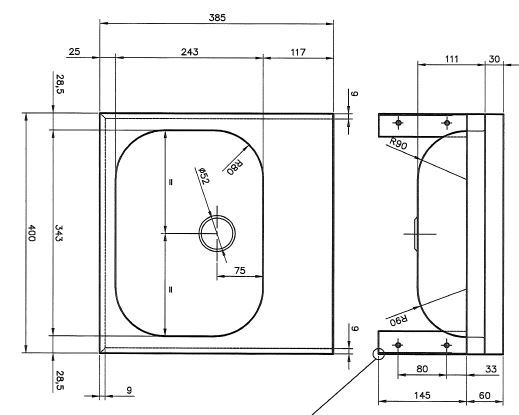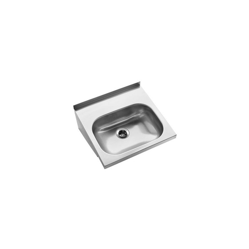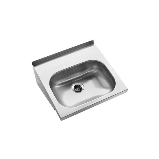 RVS Mini wastafel voor wandmontage. Incl. 1,5" afvoerplug zonder wandoverloop met geintegreerde consoles. Uitw. afm. 400x388x110mm