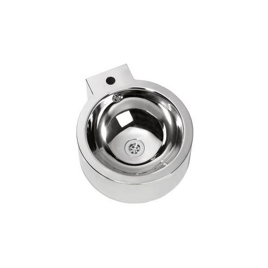 RVS design waskom voor wandmontage. Incl. 1,25" afvoerplug met overloop en kraangat. Uitv. Hoogglans.
