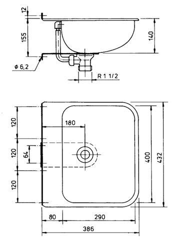 340050 RVS wastafel 432x386x140mm