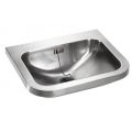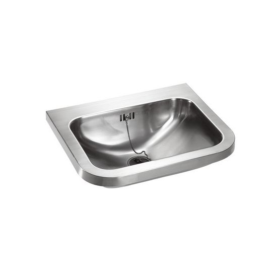Economische RVS wastafel voor wandmontage met 1,5" afvoerplug, overloop, stop en ketting en 1 middenconsole. Afm. 480x402x140mm.