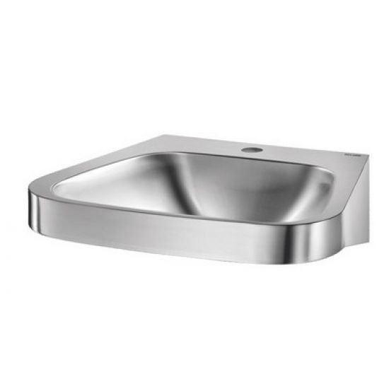 Wastafel te bevestigen aan de muur, 540 x 480 mm. Bacteriostatisch RVS 304. Gesatineerde afwerking. Dikte RVS: 1,2 mm voor de waskom en 1,5 mm voor de rand. Onscherpe afwerking. Met kraangat Ø 35 in het midden. Geleverd met afvoer 1"1/4. Zonder overloop. Bevestigingen meegeleverd. CE keurmerk. Conform de norm EN 14688.Gewicht: 4,65 kg.