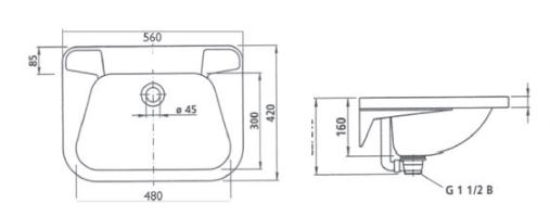 Wastafel Exclusive I uitw. 560x420x160mm incl. kr.g.35 mm, incl. console