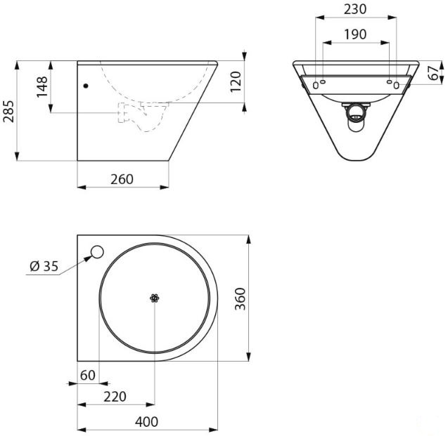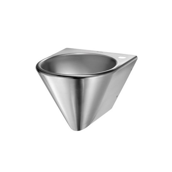Wastafel te bevestigen aan de muur. Binnendiameter van de wastafel: 310 mm. Sober en strak design. Bacteriostatisch RVS 304. Gesatineerde afwerking. Dikte RVS: 1,2 mm. Onscherpe afwerking. Vandaalbestendig: wastafel met gesloten onderkant, verborgen sifon. Snel en eenvoudig te plaatsen: monteren via de voorkant dankzij de bevestigingsplaat in RVS. Met kraangat Ø 35 rechts. Geleverd met afvoer 1" 1/4 en hevel. Zonder overloop. Bevestigingen meegeleverd. CE keurmerk. Conform de norm EN 14688. Gewicht: 5,5 kg.