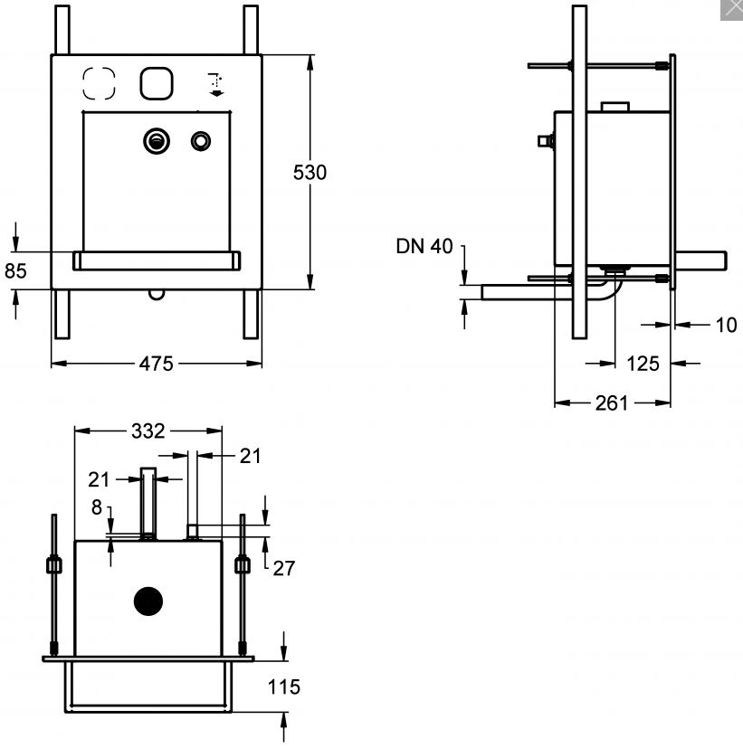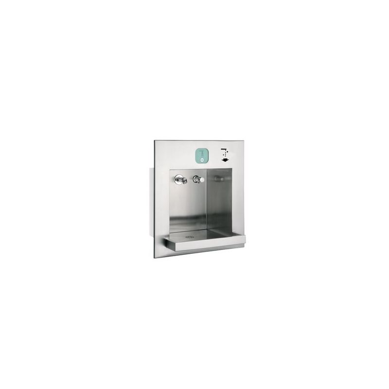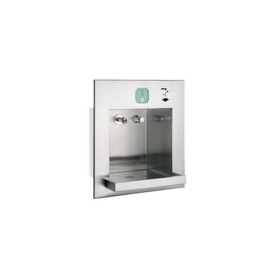 Combinatie met AQUA 121 contactloos en Z-AQUA083 zeep Wastplaatseenheid voor water-en zeepafgifte, voor wandinbouw, vandalisme bestendig, in het bijzonder geschikt voor openbare toiletten in parkeerplaasten en in parkeergarages. Functionele componenten via technishe ruimte toegankelijk. Complete eenheid met beghuizing, gebruiksruimte en bak van chroomnikkelstaal, oppervlak geborsteld, gelast. Totale afmetingen (bxhxd) 475x530x390mm Bakuitsteek 125 mm Prijs op aanvraag artikelnummer 7612982102486