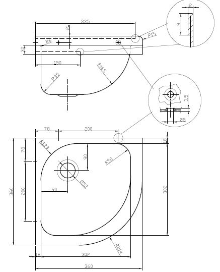CO36 RVS hoekwastafel 360x360mm