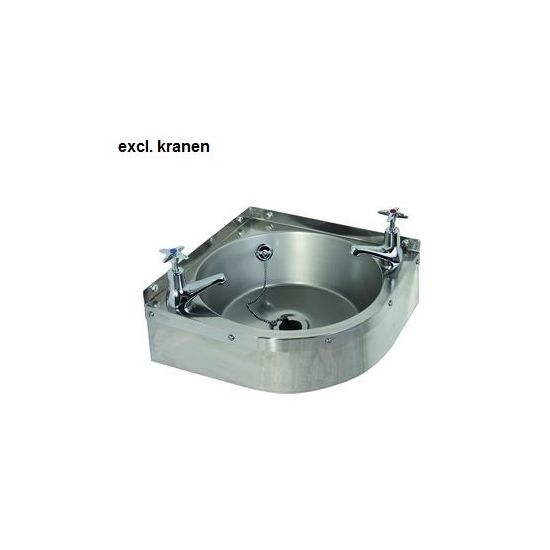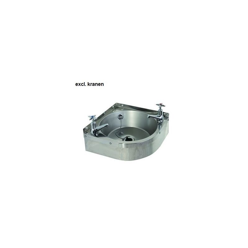 RVS 304 Hoekwastafel wandmodel 352x352mm met plug en wandoverloop