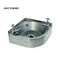 RVS 304 Hoekwastafel met dieper bakje wandmodel 352x352mm met plug en wandoverloop