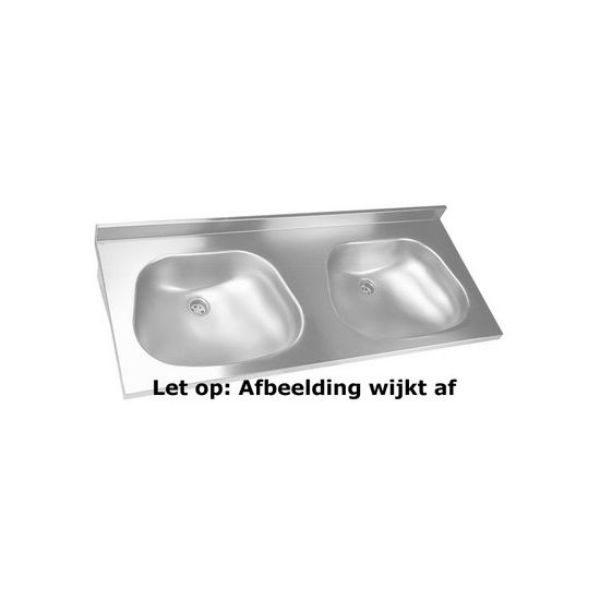 RVS wastafel. Compleet met 1,5" afvoerpluggen en RVS consoles en opstand 60mm.