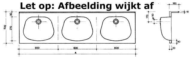 LAMB160 RVS wastafel afm. uitw. 600x500mm incl. consoles