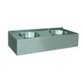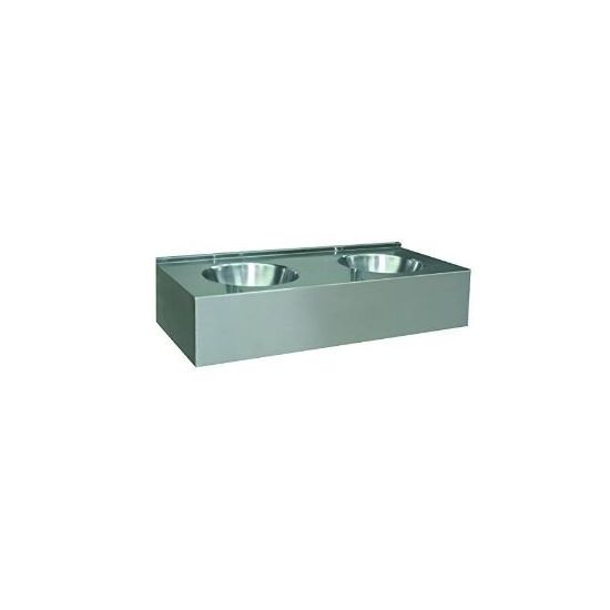 RVS 304 seriewastafel met 2 waskommen 350mm. Achterzijde blokprofiel 15x30mm. Incl. kraangaten.