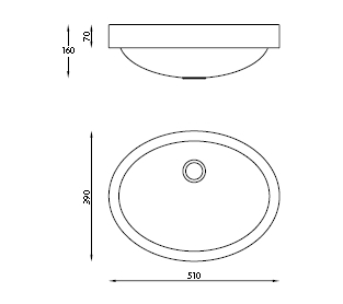 RVS half-inbouw wastafel ovaal 510x390x160mm. Satin finish. OVAL