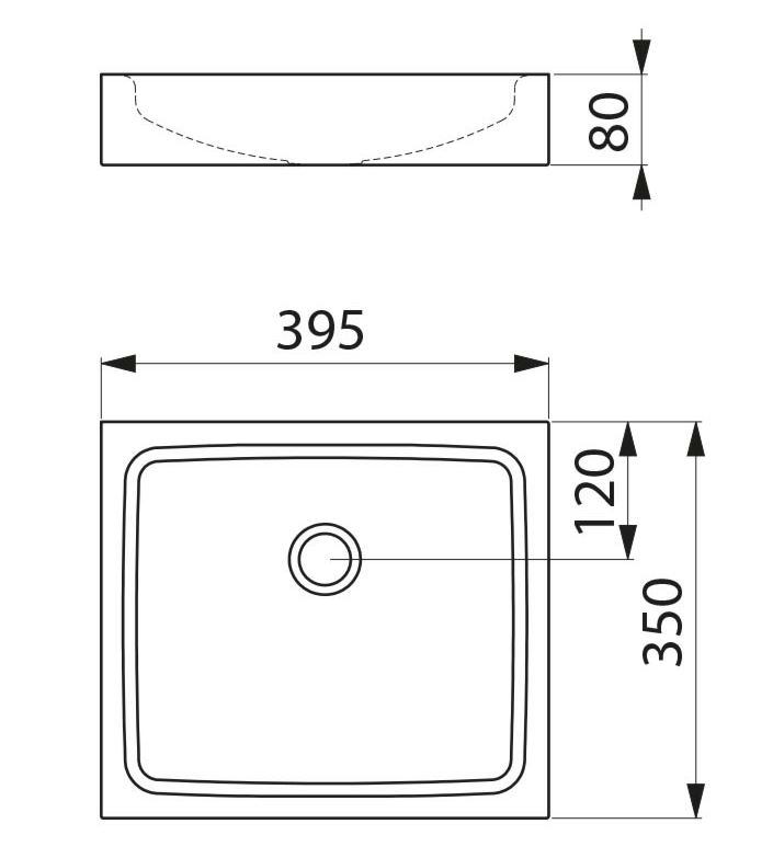 120810 UNITO RVS 304 design wastafel opbouw 395x350x80mm satin finish.