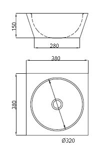 RVS opbouw wastafel 'satin'. Uitw. 380x380x150mm. Uitvoering: satin finish PRISMA