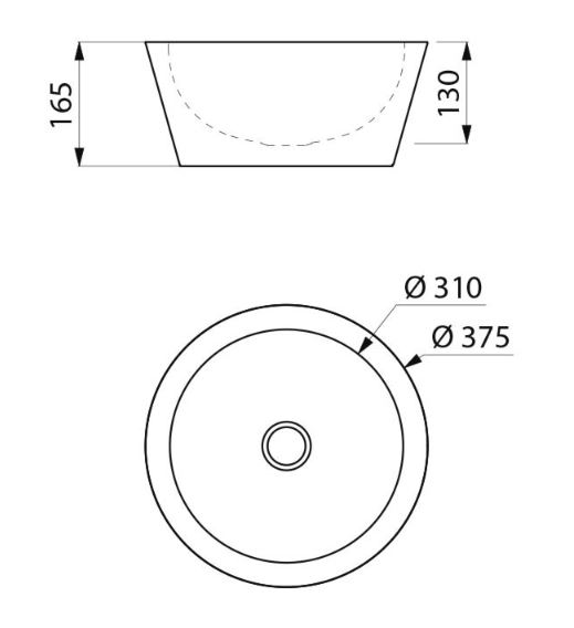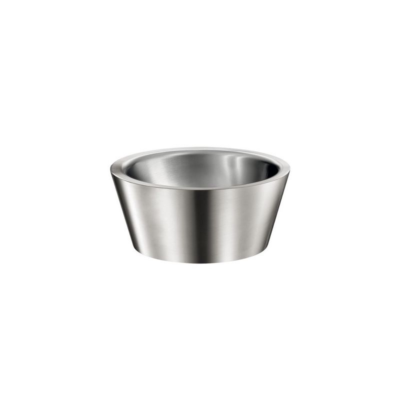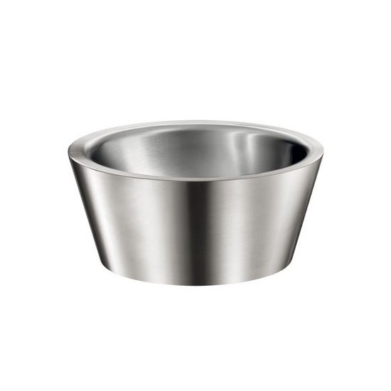 Waskom te plaatsen op blad, Ø 375 mm. Geschikt voor het plaatsen van een verhoogd model of muurmodel kraan/mengkraan. Binnendiameter van de waskom: 310 mm. Bacteriostatisch RVS 304. Dikte RVS: 1,2 mm. Mat gepolijste afwerking. Naadloos uit een stuk geperst, zonder lassen. Afgeronde vorm. Geleverd met afvoerplug 1"1/4. Zonder overloop. CE markering. Conform de norm EN 14688.