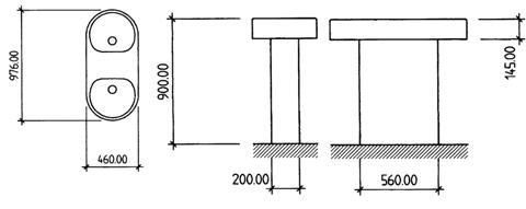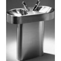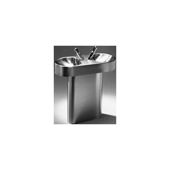 RVS roundline dubbele wastafelzuil afm. 900(h)x980(l)x460(b)mm. Op zuil, voorzien van montageplaat, excl. kranen.