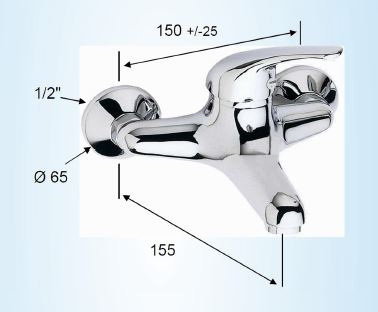 Muurmodel voor warm/koud gemengd water tbv Intersan wastroggen