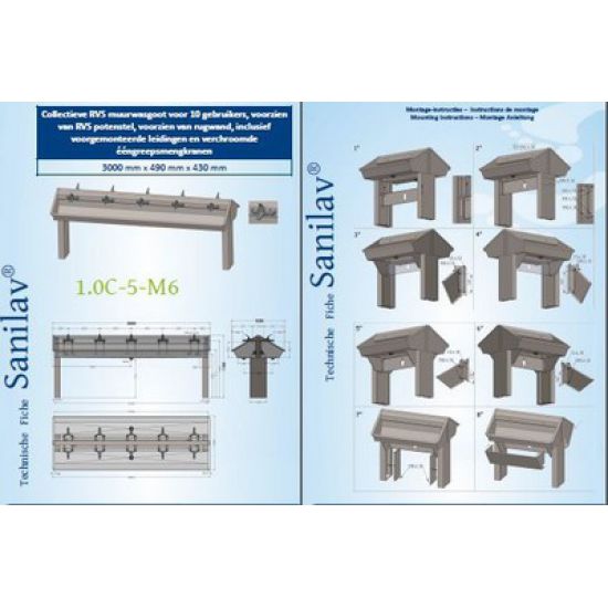 RVS Wastrog met 2 toevoerleidingen, 1 voor warm en 1 voor koud water met voorgemonteerde zelfsluitende kranen. Incl. afvoerplug 6/4" . Leverbaar 3000mm voor 10 personen.