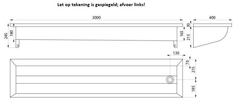 122310 RVS 304 wasgoot 3000x400x180mm, afvoer links