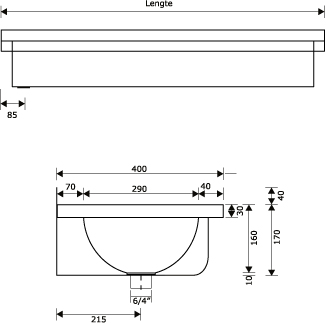 PL30 RVS 304 wasgoot 3000x400mm afvoer midden, incl. plug