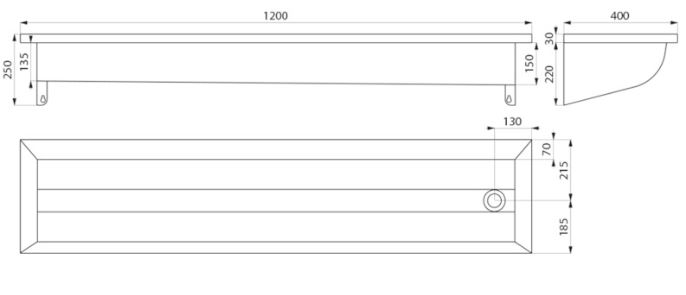 120250 RVS 304 wasgoot 1200x400x180mm, afvoer rechts