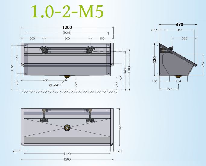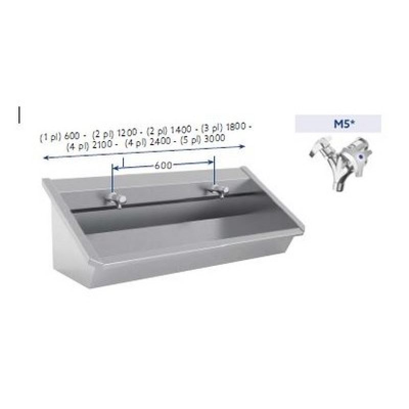 TM2CHR RVS Wastrog met 2 toevoerleidingen, 1 voor warm en 1 voor koud water met voorgemonteerde hartmengkranen. Incl. afvoerplug 6/4". Toevoer standaard rechts, optie: links. Leverbaar in de maten 1200, 1800, 2400, 3000mm voor resp. 2, 3, 4 of 5 personen