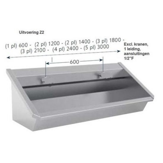 1.0-3-Z2 RVS 304 Muurwastrog 3 pl., met leiding, zonder kranen