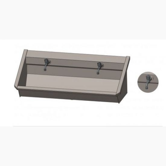 Sanilav 1.0-2-M2 RVS Wastrog met 1 toevoerleiding voor koud of voorgemengd waterkranen. Incl. afvoerplug 6/4" + Toevoer standaard links. Leverbaar in de maten 1200, 1800, 2400, 3000mm voor resp. 2, 3, 4 of 5 personen